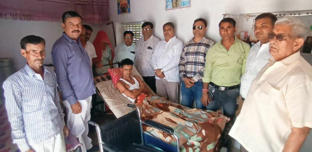 मकराना (मोहम्मद शहजाद)। मकराना तहसील के ग्राम बरवाली निवासी दिलीप अड़ानिया पुत्र स्वर्गीय साऊराम अडानिया के शरीर पर 2 वर्ष पूर्व बैंगलोर में मजदूरी करते समय दीवार गिरने से रीड की हड्डी टूट गई। घर में एक ही कमाने वाला बेटा है, वह भी असहाय हो गया। आय का कोई अन्य स्रोत नहीं है। दिलीप की दो अविवाहित बहने हैं। परिजनों ने काफी उपचार करवाया, मगर कोई लाभ नहीं हुआ। दोनों पैरों के काम ना करने से दैनिक दिनचर्या में काफी समस्या हो रही है।