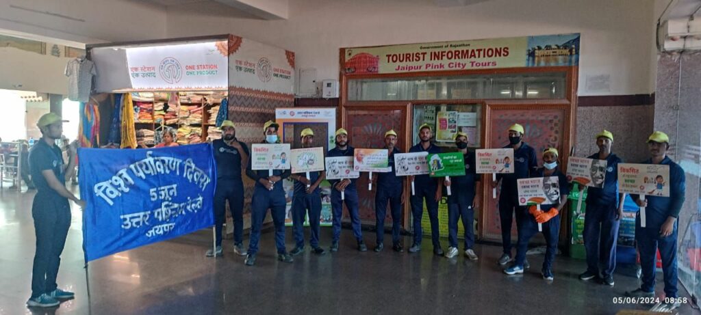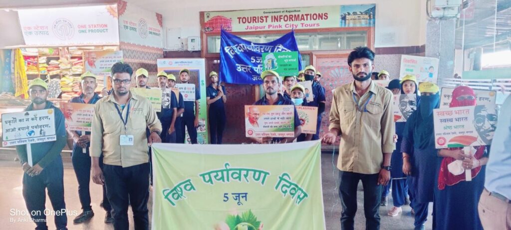 उत्तर पश्चिम रेलवे जयपुर मंडल पर 05 जून को विश्व पर्यावरण दिवस के अवसर पर जयपुर रेलवे स्टेशन पर मंडल रेल प्रबंधक विकास पुरवार नें रेलअधिकारियों एवं कर्म चारियों, स्काउट एंड गाइड तथा सफाई कर्मियों के साथ पर्यावरण बचाने के लिए शपथ ली गई । साथ ही सभी के द्वारा पौधे लगाए गए।