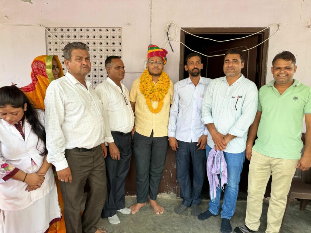 फुलेरा (दामोदर कुमावत) निकटवर्ती ग्राम पंचायत तेज्या का बास के ईरोलाव गांव के आदित्य कुमावत पुत्र शंकर लाल कुमावत (विद्युत विभाग) का नीट 2024 में 720 मे से 705 अंक प्राप्त चयन होने पर सरपंच शान्तिदेवी कुमावत, पूर्व सरपंच राजेन्द्र कुमावत एंव ग्रामवासियों ने माला व साफा पहनाकर सम्मानित किया