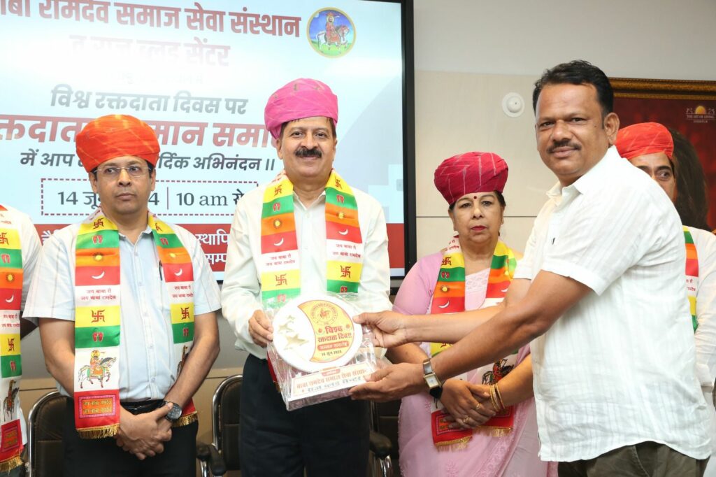 बाबा रामदेव समाज सेवा संस्थान जोधपुर द्वारा रक्तदाता सम्मान समारोह का आयोजन रक्तशाला में  उम्मेद हॉस्पिटल के अधीक्षक डॉ अफ़ज़ल हकीम, , ब्लड बैंक इंचार्ज डॉ मंजू बोहरा, संस्था के राष्ट्रीय अध्यक्ष करण सिंह राठौड़ के हाथों यूनिक अध्यक्ष शौकत अली भाटी का 48 वी बार रक्तदान करने पर व ऑल मुस्लिम चेरिटेबल सोसायटी के महासचिव अमजद खान केके पार्षद 32 बार, बाबू खान देशवाली का रक्तदान के क्षेत्र में उल्लेखनीय कार्ये करने पर स्मृति चिन्ह देकर सम्मानित किया गया !
