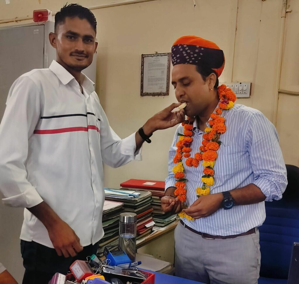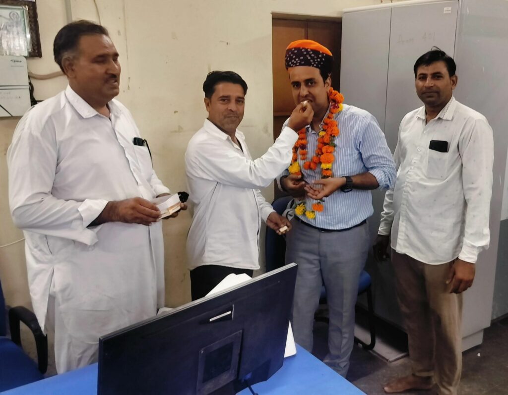 शुक्रवार को इन्होंने शुभ मुहूर्त में कार्यभार ग्रहण किया, जहां पर ग्रामीणों ने इनको मुंह मीठा कराकर माला साफा पहनाकर स्वागत किया। नए प्रबंधक जोधपुर मुख्यालय से ही यहां आए हैं।