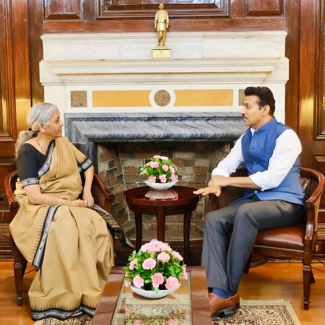 केन्द्रीय मंत्री निर्मला सीता रमण से राजस्थान कैबिनेट मंत्री कर्नल राज्यवर्धन राठौडने राइजिंग राजस्थान के लिए उत्कृष्ट विचारों पर सार्थक चर्चा की।