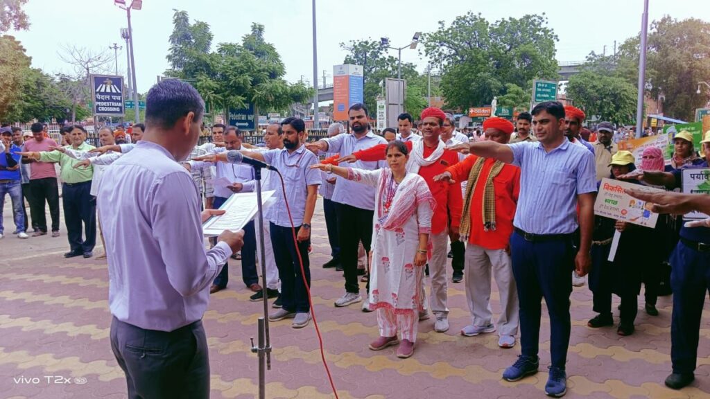उत्तर पश्चिम रेलवे जयपुर मंडल पर 17 सितंबर कों ‘स्वच्छता ही सेवाअभियान, की शुरुआत की गई। मंडल पर 17 सितंबर 2024 से 2 अक्टूबर 2024 तक चलाया जारहा है,अभियान के प्रथम दिन मंगलवार जयपुर मंडल रेल प्रबंधक कार्यालय में मण्डल रेल प्रबंधक विकास पुरवार द्वारा रेल अधिकारियों एवं कर्मचारियों के साथ स्वच्छता शपथ दिलाई