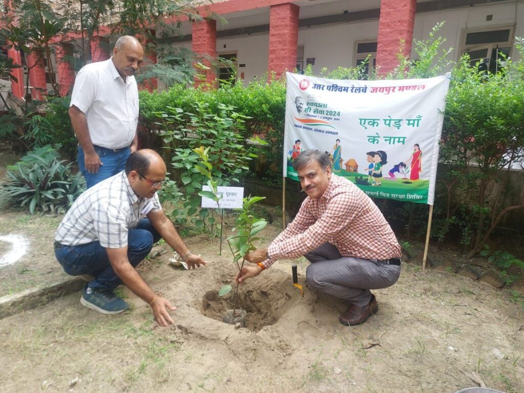 जिसके द्वारा सभी रेल कर्मियों ने 100 घंटे स्वच्छता के लिए श्रमदान करने तथा 100 अन्य व्यक्तियों को इस कार्य के लिए प्रेरित करने का संकल्प लिया। साथ ही मंडल कार्यालय में पौधा रोपण कर “एक पेड़ माँ के नाम” पौधारोपण अभियान की शुरूआत की गई।