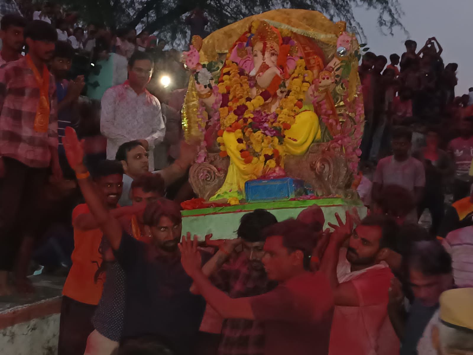 इस दौरान लोगों में उमंग और खुशी थी। गणपति शोभा यात्रा निकाली गई और जयकारे लगाए गणपति बाबा मोरिय  अगले बरस तू जल्दी आना जय कारे बोल उठे सार्वजनिक तालाब किनारे पहुंचने पर विधिवत पूजाअर्चना के बाद महाआरती के बाद प्रसाद वितरण गणेश विसर्जन में बड़ी संख्या में लोगों ने भाग लिया।