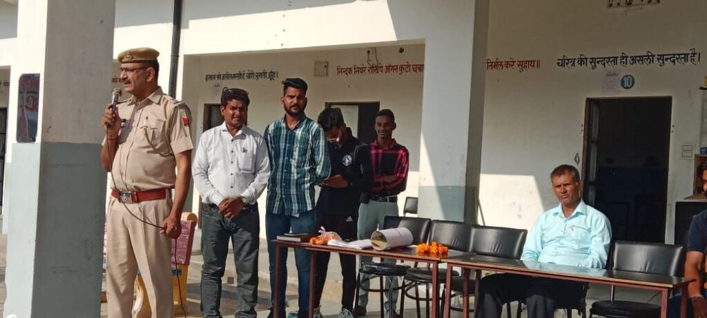 अल्फा योगा कॉलेज एवं अल्फा पब्लिक सीनियर सेकेंडरी स्कूल फुलेरा में थानाधिकारी बाबूलाल मीणा ने विद्यार्थियों को व्यसनों से दूर रहने के साथ ही यातायात नियमों कि जानकारियां दी। थानाधिकारी मीणा ने दुपहिया वाहन चलाते समय हेलमेट का प्रयोग करें,