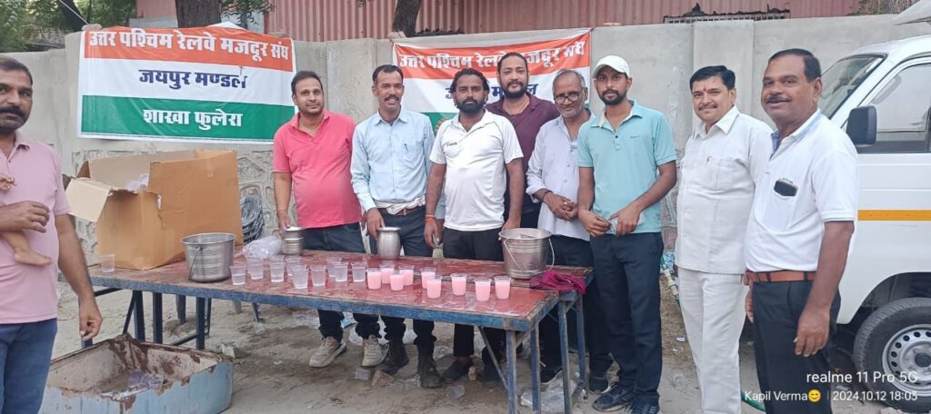 फुलेरा (दामोदर कुमावत) उत्तर पश्चिम रेलवे मजदूर संघ शाखा फुलेरा की और से दशहरे मेले में शरबत वितरण किया,