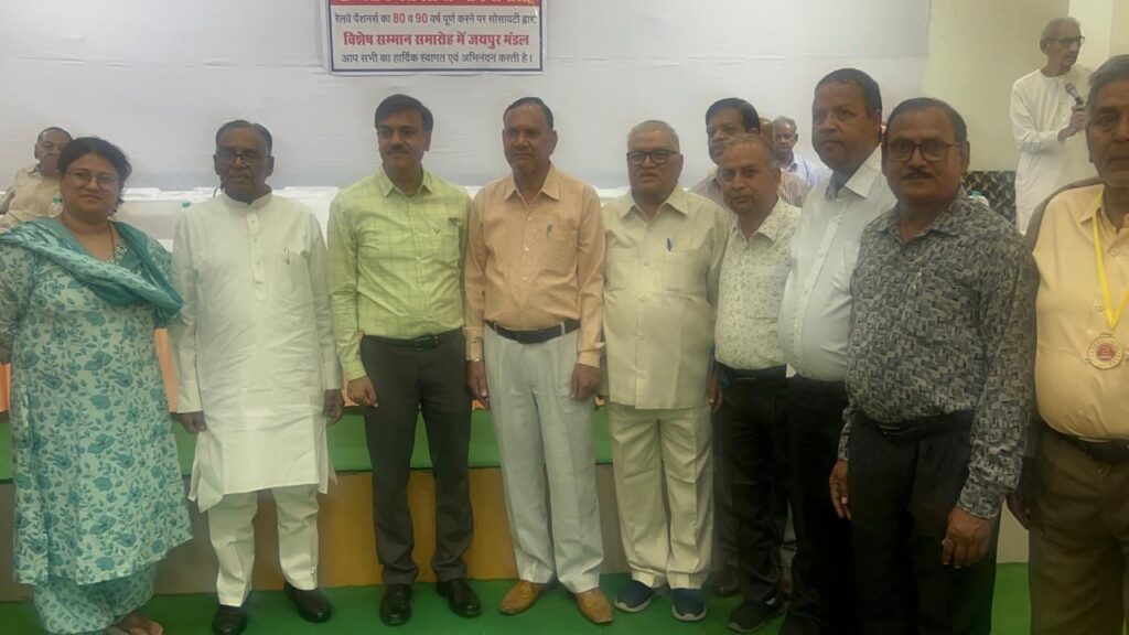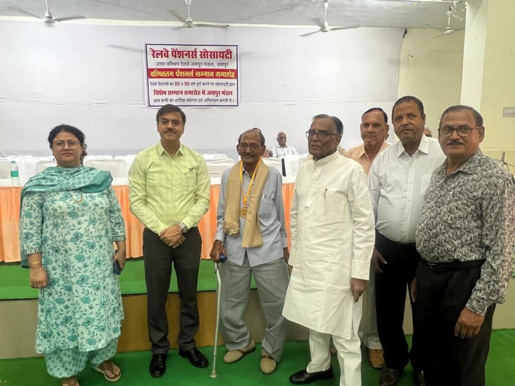 रेलवे पेंशन सोसायटी जयपुर के तत्वाधान में हर वर्ष की भांति शनिवार को 80 से 90 वर्ष ऊपरआयु के पेंशनर्स का सम्मान सामुदायिक भवन रेलवे कॉलोनी जयपुर में किया गया,रेलवेपेंशनर सोसायटी के कार्यालय सचिव योगेंद्र सिंह गोहिल (टोनी) एवं एस के माथुर ने बताया कि