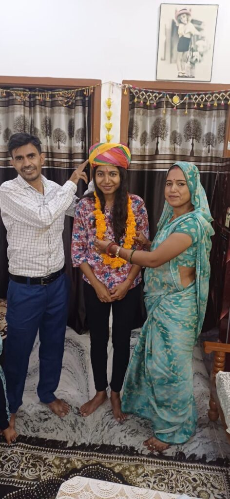 ग्रामवासियों ने कु हर्षल, उनके पिता संजय वर्मा और परिवारजनों का माला एवं साफा पहनाकर मुंह मीठा कराया।इस मौके पर आनंदीलाल महरडा, जगदीश सरावता ने बधाई दी, वही राम पाल गीला व विजय सामोता ने शॉल ओढ़ाकर अभिवादन किया