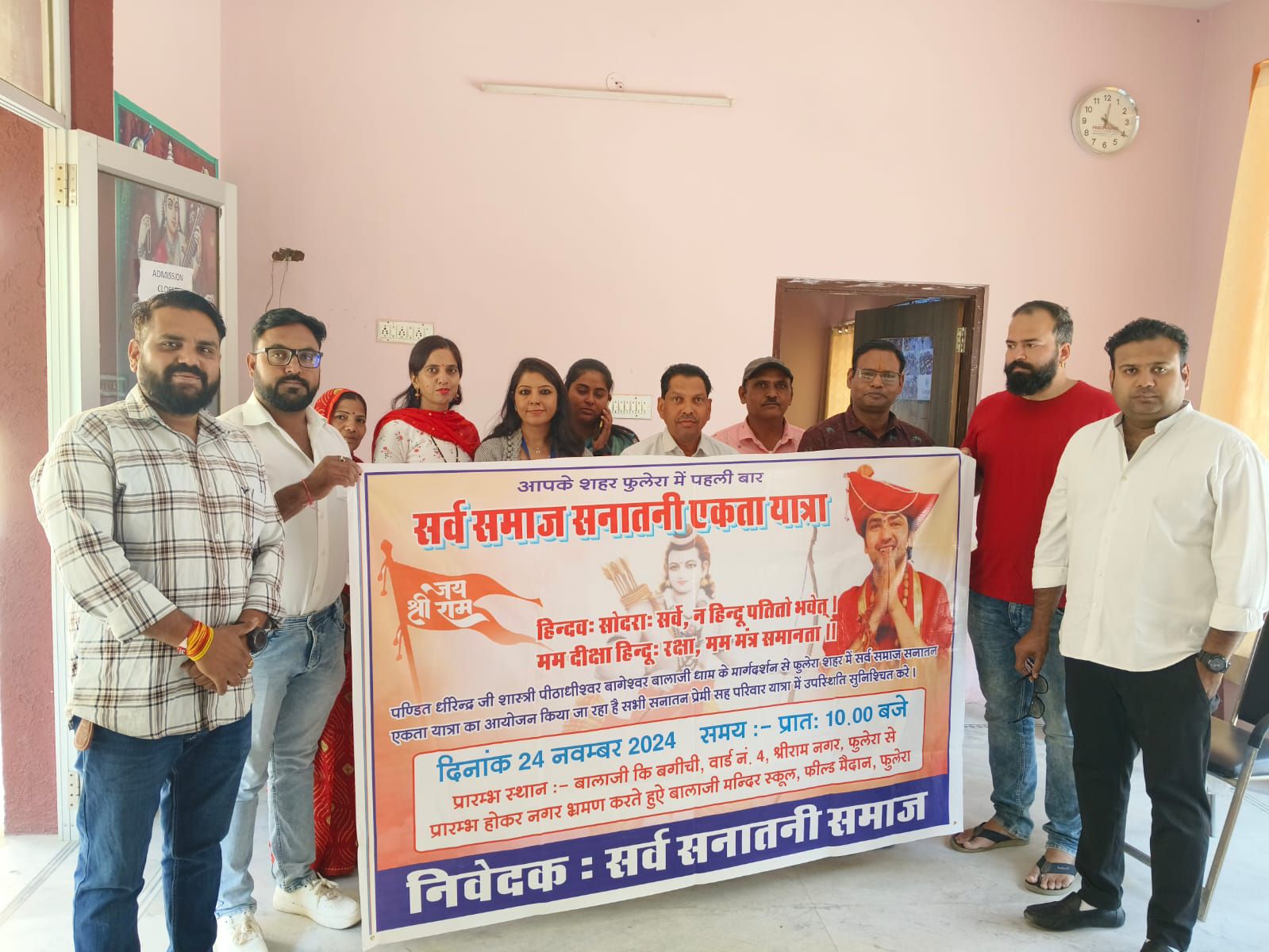 बागेश्वर धाम के मार्गदर्शन से धार्मिक और सनातनी एकता को सशक्त करने के उद्देश्य से सनातन एकता पदयात्रा का आयोजन24 नवंबर को किया जाएगा। पदयात्रा आयोजन समिति ने जनसंपर्क अभियान के तहत समाज के प्रमुख प्रतिनिधियों के द्वारा पद यात्रा के पोस्टर का विमोचन किया गया।