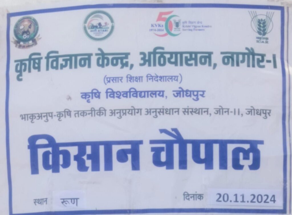 रूण-गांव रूण में बाग ए दाऊद कृषि फार्म पर एकदिवसीय किसान चौपाल का आयोजन बुधवार को हुआ। कृषि विज्ञान केंद्र अठियासन के डॉक्टर हरीराम चौधरी ने किसानों को रबी फसल में होने वाली बीमारियों के बारे में बचाव की जानकारी दी गई और इसके साथ ही उन्नत किस्म की तकनीकी किसानों तक पहुंचाई गई ,