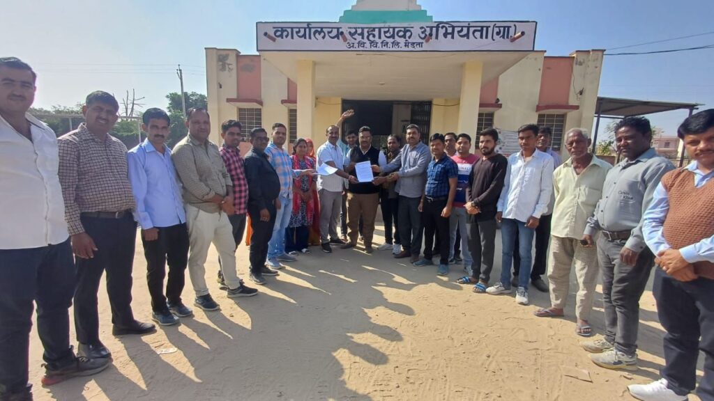 मेड़ता रोड अजमेर विद्युत वितरण निगम लिमिटेड के कर्मचारियों ने राजस्थान विद्युत संयुक्त संघर्ष समिति के तत्वाधान में निजीकरण का विरोध करते हुए एक दिन की हड़ताल रख अपनी पास सूत्रीय मांगों का ज्ञापन सहायक अभियंता मनोज बंसल को दिया।