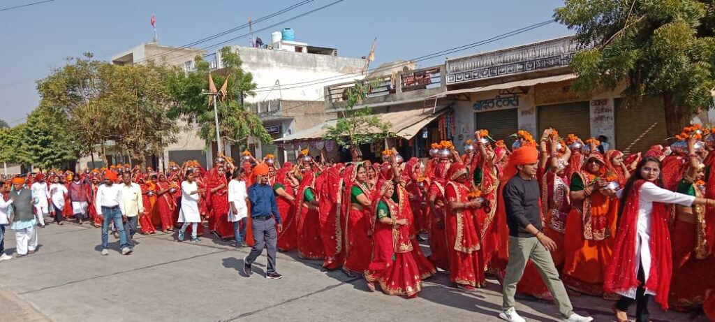 सत्यनारायण महाराज एवं रामपाल महाराज के सानिध्य में मुख्य यजमान पूर्व प्राचार्य सत्यनारायण सैनी, समाज अध्यक्ष तेजकरण सैनी एवं समाज के सैकड़ो बुजुर्ग गणमान्य,युवा व यूतियों से शराबोर भव्य कलश यात्रा चमत्कारेश्वर महादेव मंदिर पहुंची, वही सांय 4: बजे विद्वान पंडितो द्वारा हवन यज्ञ का आयोजन