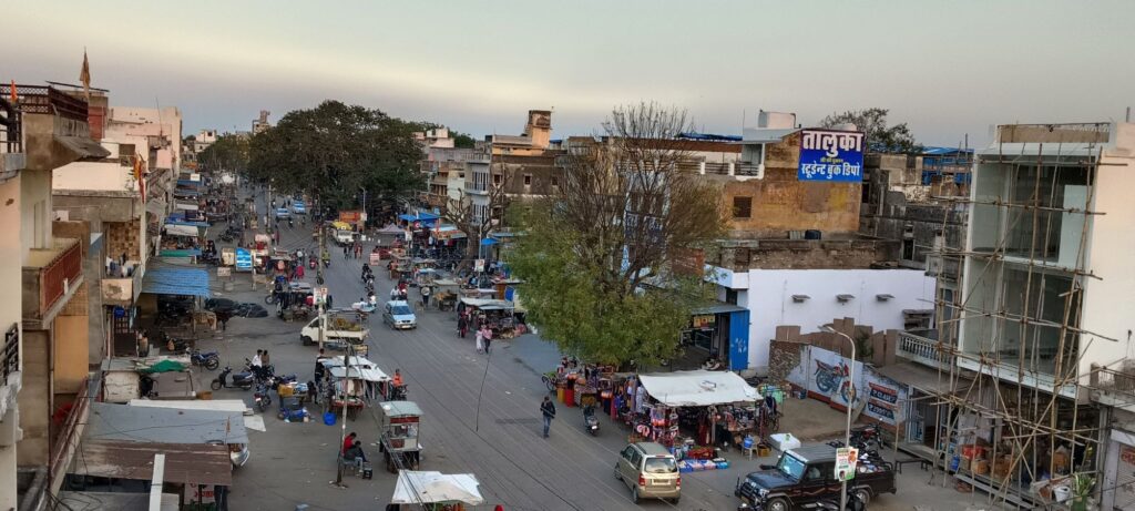 फुलेरा के प्रमुख गणगौरी बाजार के 100 फुट चोडे रास्ते पर अतिक्रमण।