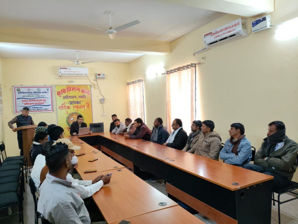 रूण-कृषि विज्ञान केंद्र अठियासन (नागौर ) में एक दिवसीय कृषि पर्यवेक्षकों (प्रसार कार्यकर्ताओं) का प्रशिक्षण का आयोजन गुरुवार को हुआ। जिसमें केंद्र के वरिष्ठ वैज्ञानिक एवं अध्यक्ष डॉ गोपीचंद सिंह ने बताया कि नागौर जिले में लगातार भूमि का जल स्तर कम और गुणवत्ता कम होती जा रही है जिससे हमारे किसानों की फसलों का उत्पादन कम हो रहा है,