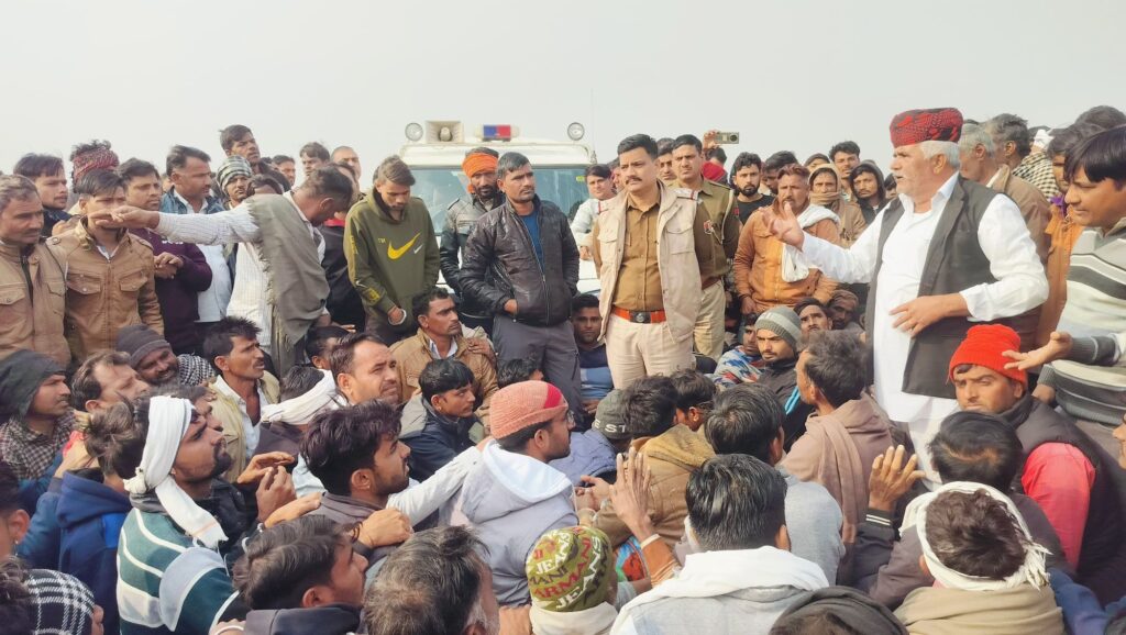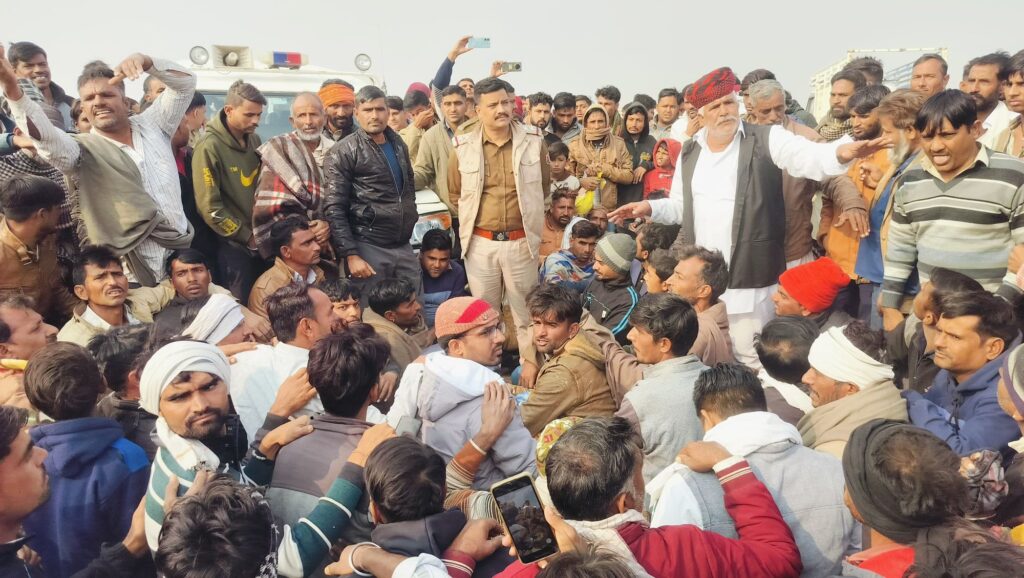 रूण- इंदौकली के सभी समाज के लोगों ने पुलिस के समक्ष दिया धरना