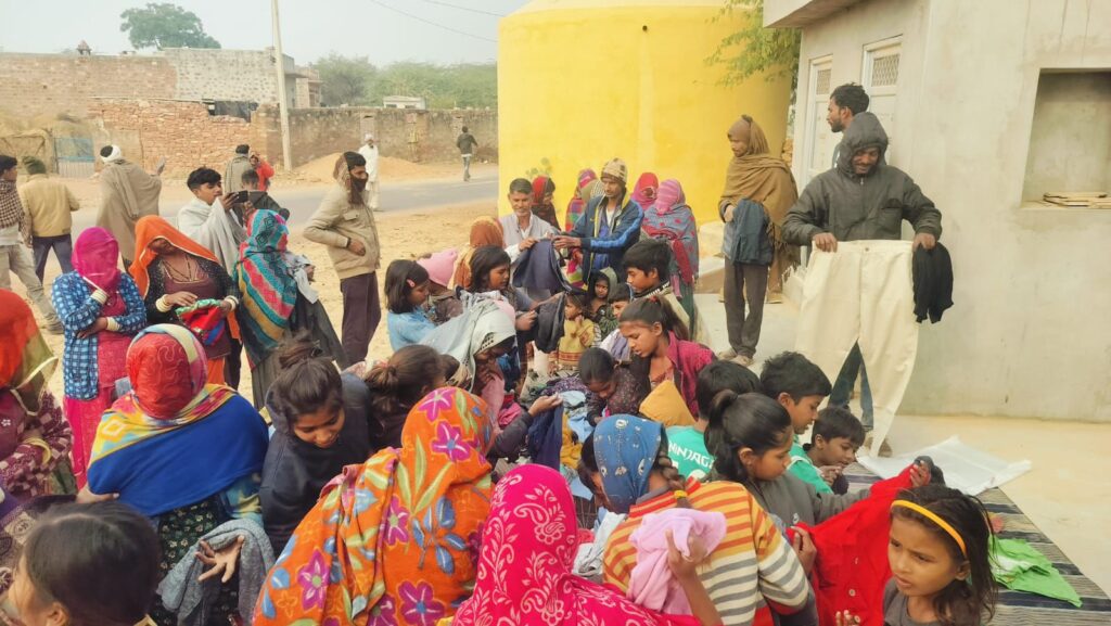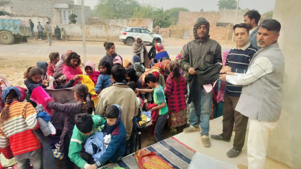 रूण- नागौर जिले के गांव भटनोखा में मंगलवार को सर्दी के मौसम को मदैनजर रखते हुए निशुल्क कपड़ों का वितरण किया गया।