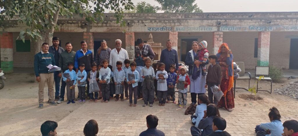 रूण(नागौर)-निकटवर्ती गांव मिरजास स्थित राजकीय उच्च प्राथमिक विद्यालय में एक अध्यापिका द्वारा सर्दी के मौसम को मदेनजर रखते हुए गर्म स्वेटर का वितरण किया गया।