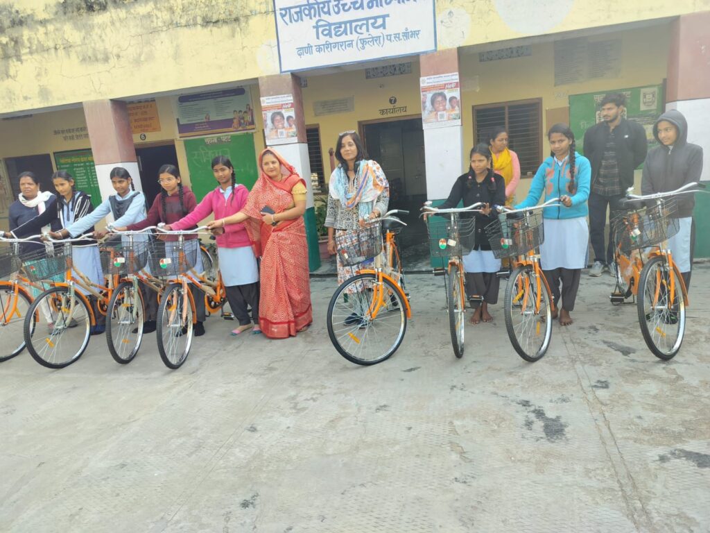 कस्बे की राजकीय उच्च माध्यमिक विद्यालय ढाणी कारीगरान पर मंगलवार को कक्षा नवीं की छात्राओं को राज्य सरकार की ओर से प्रदत्त साइकिल वितरण कार्य क्रम आयोजित किया गया।