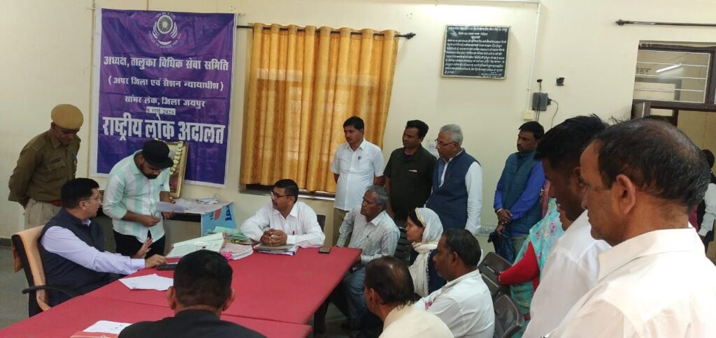 राजस्थान राज्य विधिक सेवा प्राधिकरण, जयपुर व अध्यक्ष, जिला विधिक सेवा प्राधिकरण (जिला एवं सेशन न्यायाधीश) अजीत कुमार हिंगर, जयपुर जिला के निर्देशानुसार इस साल की प्रथम राष्ट्रीय लोक अदालत का आयोजन शनिवार को सांभर लेक न्यायालय परिसर, में अपर जिला एवं सेशन न्यायाधीश क्र.स. 2, नीरज भामू की अध्यक्षता में किया गया।