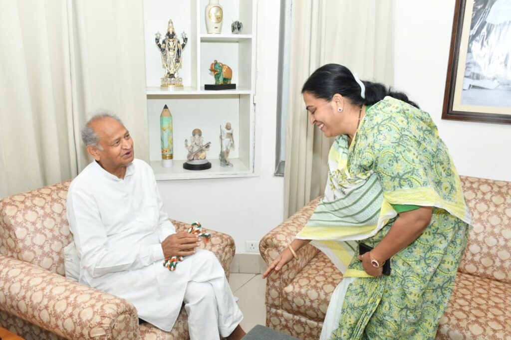 जयपुर में कांग्रेस के पूर्व मुख्यमंत्री श्री अशोक गहलोत से अखिल भारतीय महिला कांग्रेस की राष्ट्रीय अध्यक्ष अलका लांबा और राजस्थान प्रदेश कांग्रेस कमेटी की सचिव हेमलता चौधरी ने गहलोत आवास पर मुलाकात की। इस दौरान महिला कांग्रेस के संगठन के विस्तार, संगठन की मजबूती और महिलाओं की सशक्त भागीदारी सुनिश्चित करने पर चर्चा हुई।