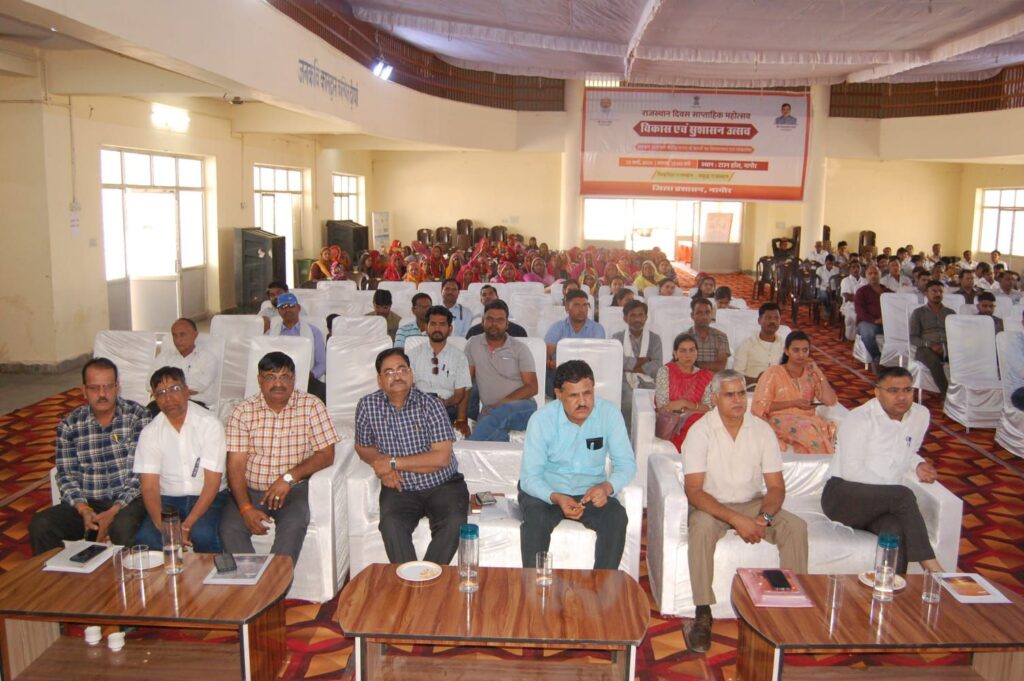 नागौर में राजस्थान स्थापना दिवस साप्ताहिक समारोह के उपलक्ष्य में आयोजित कार्यक्रमों की श्रृंखला में शुक्रवार को टाउन हॉल में विकास एवं सुशासन समारोह का जिला स्तरीय कार्यक्रम आयोजित किया गया। इस कार्यक्रम में नगरपरिषद सभापति मीतू बोथरा, जिला कलक्टर अरुण कुमार पुरोहित, जिला परिषद मुख्य कार्यकारी अधिकारी रविन्द्र कुमार, उपनिदेशक आर्थिक व सांख्यिकी रामकुमार राव तथा अन्य जिला स्तरीय अधिकारियों, लाभार्थियों ने भाग लिया।