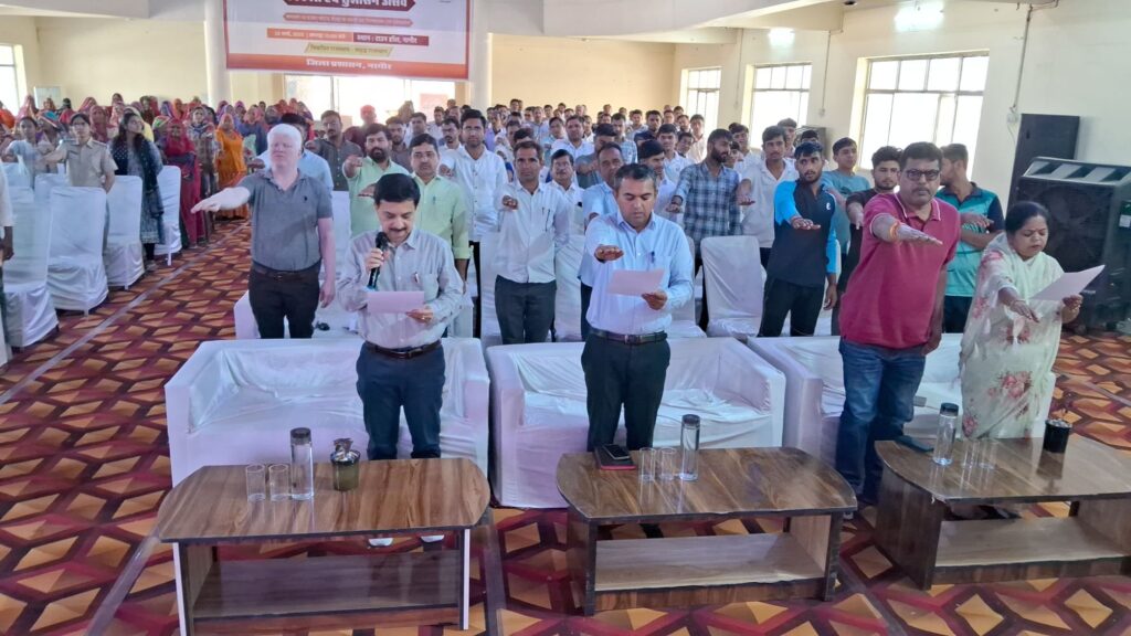 इसके अलावा, जिला कलक्टर अरुण कुमार पुरोहित ने टाउन हॉल में उपस्थित अधिकारियों व आमजन के साथ राजस्थान दिवस के गौरवमयी अवसर पर सुशासन शपथ दिलाई। इस शपथ में राजस्थान की महान परंपराओं का सम्मान एवं निर्वहन करने के साथ ही राज्य के विकास एवं खुशहाली में सक्रिय भागीदार बनकर राजस्थान को समृद्ध, स्वच्छ, स्वस्थ, हरित और आत्मनिर्भर प्रदेश बनाने का संकल्प लिया गया।