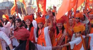 वही युवक युवतियां, गणमान्य प्रबुद्धजन जोश और लवाजमें के साथ डीजे की मुझे चढ़ गया भगवा रंग की धुन पर झूमते हुए नजर आए। शोभायात्रा जिस गली, मोहल्ले से गुजरी वहां के लोगों ने पलक पांवड़े बिछाए नजर आए।  समापन स्थल गणगौरी बाजार पर विशाल सांस्कृतिक भजन संध्या हुई।