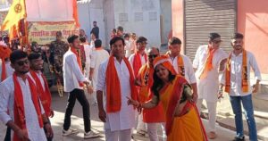 कस्बे में निकाली विशाल भगवा शोभायात्रा।
