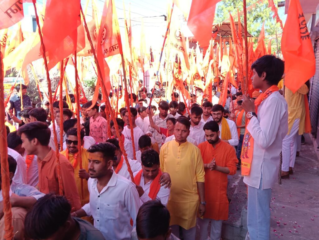 भगवान शिव पार्वती, श्री राम, हनुमान व भारत माता की जीवंत झांकियां।कस्बा हुआ भगवा मय। शोभायात्रा में जगह-जगह ठंडा पैय,फल व की गई पुष्पवर्षा।
