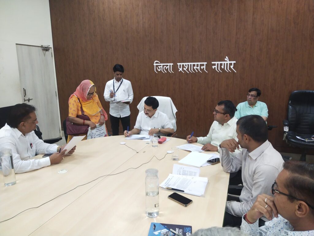 नागौर में जिला स्तरीय जनसुनवाई आयोजित की गई, जिसमें जिला कलेक्टर अरुण कुमार पुरोहित की अध्यक्षता में विभिन्न विभागों से संबंधित प्रकरणों का निस्तारण किया गया। इस दौरान 68 प्रकरण आए, जिनमें पीएम आवास शहरी योजना, अतिक्रमण, श्रम विभाग की योजनाएं, खाद्य सुरक्षा, पानी कनेक्शन, बिजली और सड़क निर्माण जैसे मुद्दे शामिल थे।