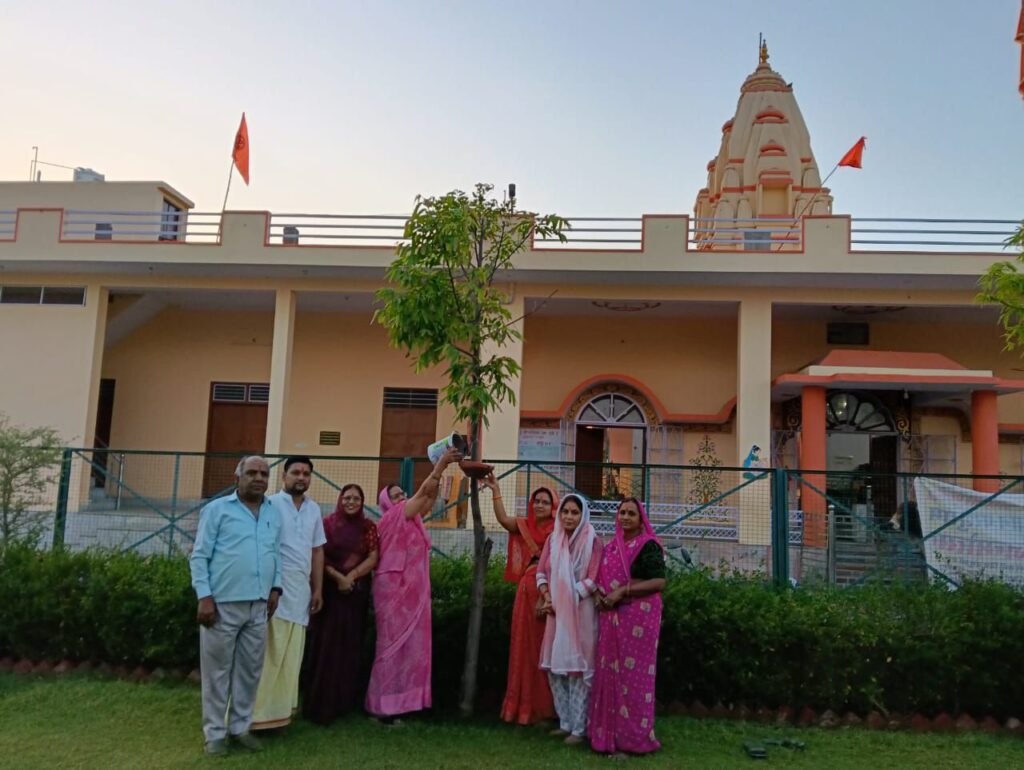 पंडित जितेंद्र शर्मा एवं मंदिर समिति के यादराम शर्मा के सानिध्य में शुक्रवार को यहां की महिलाओं  ने सेवा कार्य के तहत बेजुबा पक्षियों के पीने के पानी के परिंडे लगाए।
