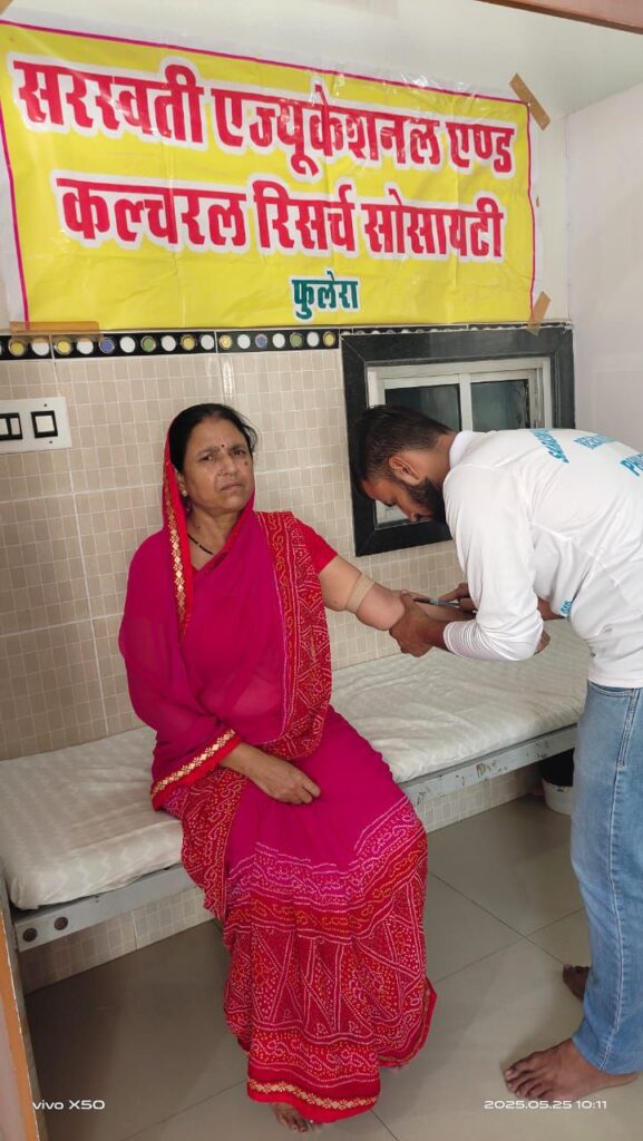 सरस्वती एजुकेशनल कल्चरल रिसर्च सोसायटी के तत्वावधान में श्रीबालाजी नेचुरो एंडफिजियो रिहैब क्लिनिक पर निःशुल्क थायराइड एवं ब्लड शुगर कैंप का आयोजन किया गया। संस्थान के अध्यक्ष डॉ अविनाश दाधीच ने बताया कि कैंप में 104 लोगों की निःशुल्क थायराइड व 21लोगों की ब्लड शुगर की जांच की गई एवं थायराइड की दवा का निःशुल्क वितरण किया गया।