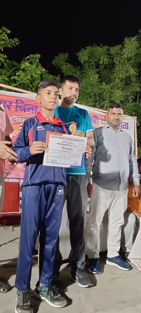 जयपुर जिला स्तरीय जूनियर/ सब जूनियर बालक एवं बालिका वर्ग के विभिन्न भार वर्ग में आयोजित मुक्केबाजी प्रतियोगिता में जयपुर के आशीष यादव ने एक बेहद रोमांचक मुकाबले में 37 से 40 किलो भार वर्ग के फाइनल में आदित्य चौधरी को हराकर गोल्ड मेडल जीता।