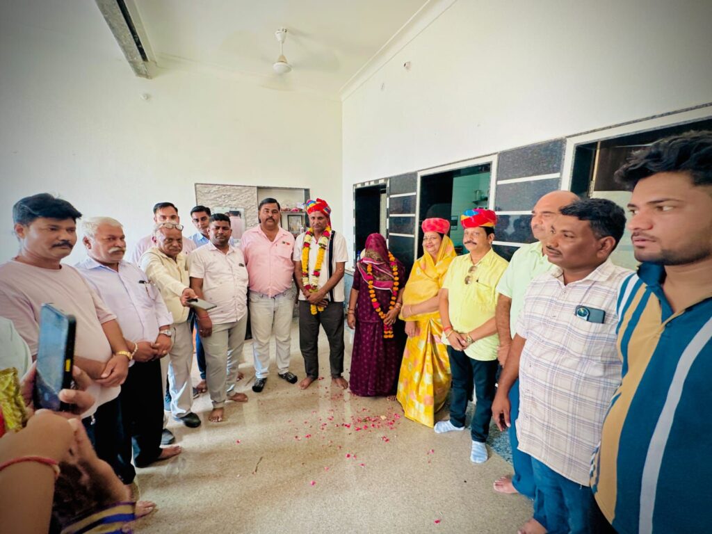 कलरु सरपंच अशोक झुरिया ने उपाध्यक्ष शोभा लाहोटी एवं उनके पति नरेंद्र लाहोटी का साफ एवं माला पहनकर अभिनंदन किया गया