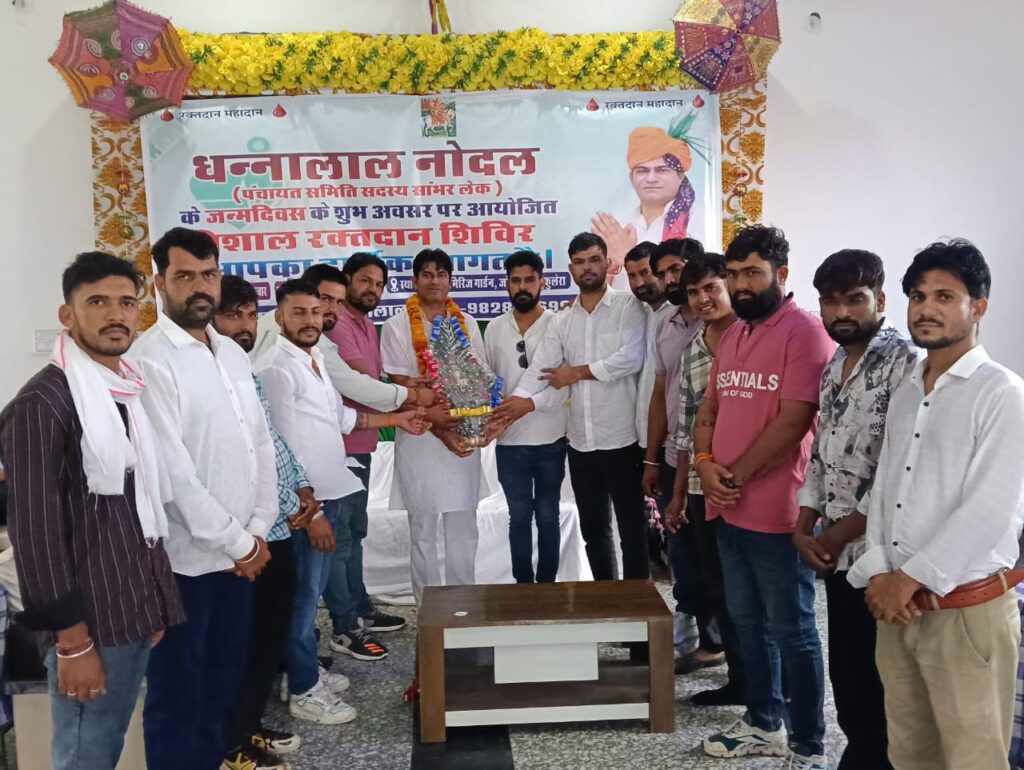 संग्रह कर्ताओं ने बताया कि रक्तदाताओं,उनके परिवारजन एवं उनके मिलने वालों को फुलेरा ब्लड सेंटर की ओर से निशुल्क रक्त दिया जाएगा।इस अवसर पर धन्नालाल नोदल को उनके चाहने वालों ने साफे, मालाओं और पुष्प गुच्छ देकर कार्यक्रम को और यादगार बना दिया। इस मौके पर उप प्रधान मोहिनी देवी, सरपंच महेश यादव,चेतनचोट्या, वीरेंद्र सैनी,बाबूलाल चौधरी,भैरू राम षेसमा, पवन कुमार, गोपाल धायल, मुकेश चौधरी,राम प्रकाश प्रजापत,शंकरचुला, हजरू तंवर, कैलाश छापरया, विकास कुमार, रमेश नोदल,रिंकू नोदल,यादवेंद्र, लोकेश, शंकर लाल, ललित नोदल सहित परिवारजन मित्र एवं धन्नालाल नोदल टीम के सदस्य मौजूद रहे।