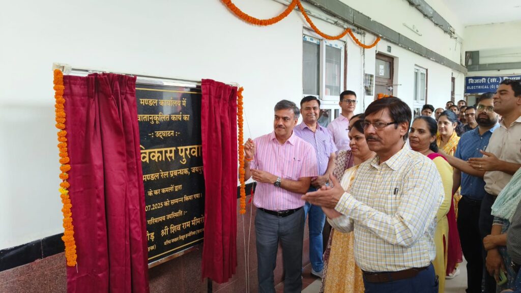 फुलेरा (दामोदर कुमावत) नॉर्थ वेस्टर्न रेलवे एम्पलाइज यूनियन के जोनल कार्यकारी अध्यक्ष एवं मंडल मंत्री मुकेश चतुर्वेदी ने बताया कि डीआरएम ऑफिस जयपुर में वर्ष 2019 से लगातार प्रयास के पश्चात सितंबर 2023 में तत्कालीन महा प्रबंधक से जयपुर मंडल कार्यालय को वातानुकूलित करने की स्वीकृति मिली तथा लगातार प्रयास के पश्चात वरिष्ठ मंडल विद्युत इंजीनियर शिवराम मीमरोठ ने द्वितीय तल पर एसी लगाकर डीआरएम विकास पुरवार एवं एडीआरएम गौरव गौड़ से शिलान्यास का उद्घाटन करवाया क्योंकि कार्मिक विभाग में एसी की शुरुआत हुई।
