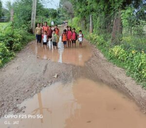 ग्रामीणक्षेत्र में सड़क की दरकार आमजन से लेकर विद्यार्थियों के लिए परेशानी का बना सबब।