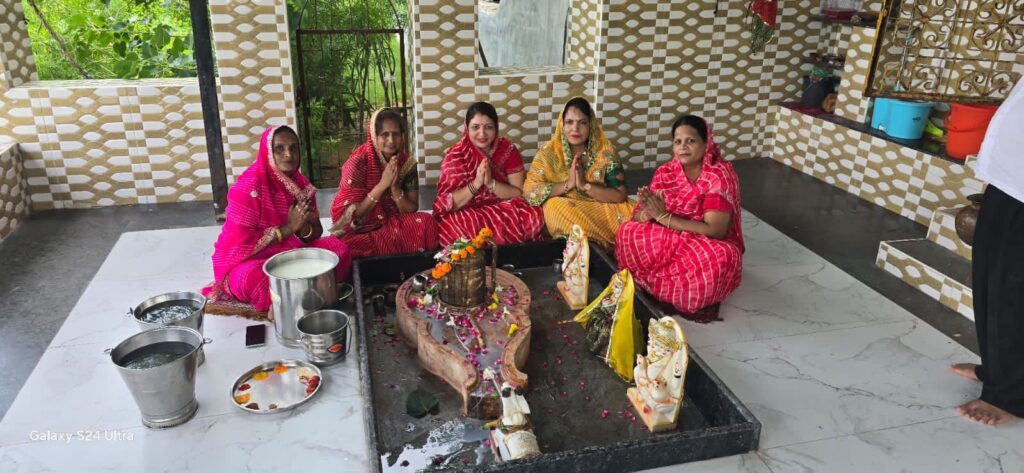माहेश्वरी महिला मंडल द्वारा सावन के उपलक्ष्य में विष्णुसागर स्थित शिव मंदिर में भव्य अभिषेक एवं सामूहिक गोठ का आयोजन किया गया। कोषाध्यक्ष हेमलता काबरा ने बताया कि भक्ति माहौल में हर-हर महादेव के जयकारे और मंत्रोच्चार के साथ शिवजी का दूध व जल से अभिषेक किया गया। महिलाओं ने भजन, नृत्य और मनोरंजक खेलों के साथ उत्सव को खास बना दिया। इस अवसर पर नगर पालिका अध्यक्षा शोभा लाहोटी का मंडल द्वारा स्वागत किया गया।