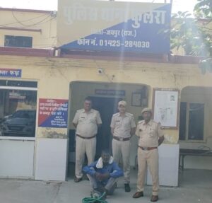 जिस पर आरोपी बालूराम उर्फ बाल्या उर्फ बोदूराम को गिरफ्तार कर कब्जे से चोरी किया गया सामान एक पानी की मोटर व पाईपों को बरामद किया गया है। आरोपी बालूराम उर्फ बाल्या भांकरोटा थाना जिला जयपुर (पश्चिम) का हिस्ट्रीशीटर है, जिसके लूट, चोरी, आर्म्स एक्ट के करीबन 23 प्रकरण दर्ज हैं। आरोपी ने अनुसंधान के दौरान थाना फुलेरा व जयपुर शहर के पुलिस थानों बगरू, शिवदासपुरा, कालवाड़, मानसरोवर, झोटवाड़ा, वैशालीनगर, मुरलीपुरा, प्रतापनगर, सांगानेर, भांकरोटा तथा पुलिस थाना परबतसर जिला नागौर ईलाको में चोरी की वारदात को अंजाम देना बताया है।गिरफ्तार आरोपी का विवरण- बालूराम उर्फ बाल्या उर्फ बोदूराम पुत्र दानाराम जाति बावरिया उम्र 50 साल निवासी कच्ची बस्ती बांसडी थाना भाकरोठा जिला जयपुर।पुलिस टीम का विवरण चन्द्र प्रकाश पुलिस निरीक्षक थानाधिकारी, धूडसिंह सउनि, रविदत्त कानि.रामचन्द्र कानि. ने सक्रिय भूमिका निभाई।