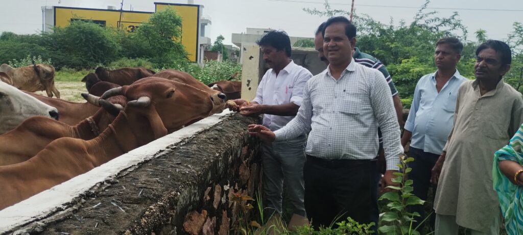 श्री खांडल विप्र भवन परिसर में गायों को गुड़ खिलाकर, पोधा रोपण किया।