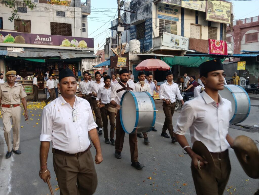 बजरंग दल ने राष्ट्रीय स्वयंसेवक संघ के शताब्दी वर्ष की ओर बढ़ते इस महत्वपूर्ण पड़ाव पर, संगठित हिंदू समाज की शक्ति का प्रदर्शन किया। इस अवसर पर विश्व हिंदू परिषद के प्रखंड उपाध्यक्ष धर्मेंद्र स्वामी, बजरंग दल केजिला सुरक्षा प्रमुख दीपेश सैनी,प्रखंड सहसंयोजक अनुराग अग्रवाल, कार्तिक कुमावत, आजाद दाधीच अरविंद कुमावत ,रोहित सैनी ,पुरंदर वर्मा, यश वर्मा , पुरुषोत्तम कमावत, रामकिशन गुर्जर, बृजेश टॉक दीपक फुलवानी ने संचलन का स्वागत किया।