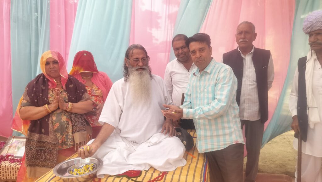 इस अवसर पर संत पांचाराम महाराज और संत राजाराम महाराज ने एक से बढ़कर एक भजनों की प्रस्तुतियां दी।इस मौके पर रामदेव भाकर, रामाकिशन, मेहराम ,देवाराम, शिवदान, श्रवणराम और सुगनाराम सहित काफी संख्या में गणमान्य नागरिकों ने संतो का फूल माला पहनाकर और महिलाओं ने बधावणा गाकर स्वागत किया।