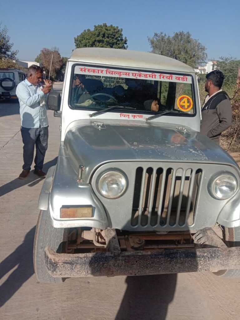 टीम ने राजस्थान मे पब्लिक स्कूल, रियाबड़ी की बाल-वाहिनी में क्षमता से दोगुना से भी अधिक बच्चों को ले जाते पाया। यह सीधे तौर पर बच्चों के जीवन को खतरे में डालने जैसा कृत्य है।