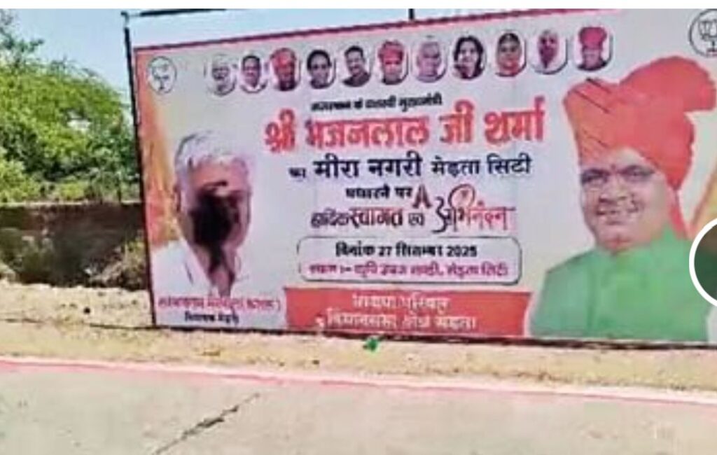 बताया गया कि अज्ञात लोगों द्वारा विधायक के चेहरे पर काली स्याही/काजल लगा दिया गया, जबकि मुख्यमंत्री के चेहरे से छेड़छाड़ नहीं की गई। इस घटना को लेकर न केवल मेड़ता में बल्कि प्रदेश स्तर तक नाराजगी देखने को मिली।