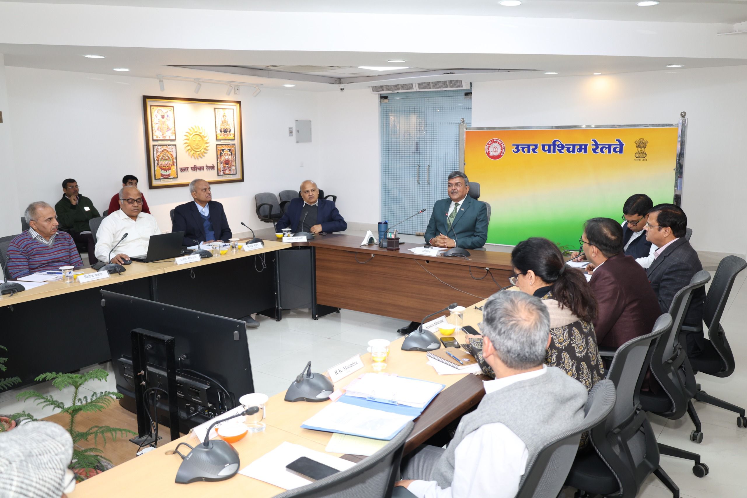 फुलेरा (दामोदर कुमावत)उत्तर पश्चिम रेलवे महा प्रबंधक अमिताभ की अध्यक्षता में प्रधान कार्यालय में शुक्रवार को जॉन स्तरीय संरक्षा एवं कार्य समीक्षा बैठक का आयोजन किया गया। इस बैठक में सभी विभागाध्यक्ष, चारों मंडलो के मंडल रेल प्रबन्धक ( विडियों कॉन्फ्रेंस के माध्यम से ) एवं अन्य अधिकारी गण सम्मलित हुए।