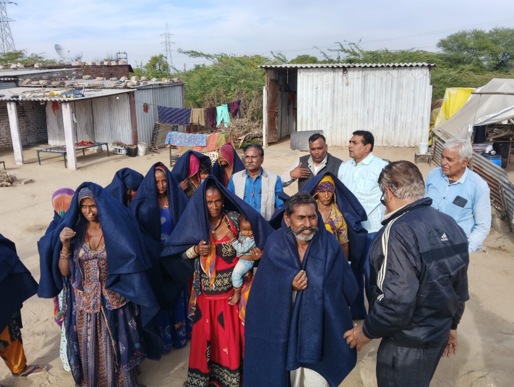 इसी प्रकार रेलवे स्टेशन तथा सांभर रोड स्थित गाडिया लुहार परिवारों को कंबलों का वितरण कर बड़ा ही नेक कार्य किया। इस अवसर पर संगठन ट्रस्ट के रामजीलाल शर्मा, महेश दाधीच, भागचंद कुमावत, चिरंजी लाल बोराणा, प्रभु दयाल वर्मा,रामनारायण यादव, दामोदर कुमावत आदि लोगों ने इस पुनीत कार्य में सहयोग किया।