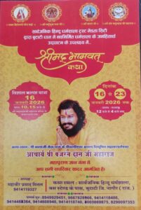 यह दिव्य आयोजन 13 जनवरी से 19 जनवरी तक श्री श्रीयादे माता प्रजापति के मंदिर प्रांगण, हरसोलाव में संपन्न होगा। इन सात दिनों में भगवान श्रीकृष्ण की लीलाओं से सजी श्रीमद् भागवत कथा का पावन वाचन प्रसिद्ध कथावाचक श्री राधेजी महाराज के मुखारविंद से होगा, जिनकी अमृतवाणी श्रोताओं के मन को प्रभु चरणों से जोड़ देगी। वहीं ‘नानी बाई रो मायरो’ की हृदयस्पर्शी कथा का वाचन लक्ष्मणजी द्वारा किया जाएगा, जो भक्ति, समर्पण और प्रेम का अद्भुत संदेश देगी।