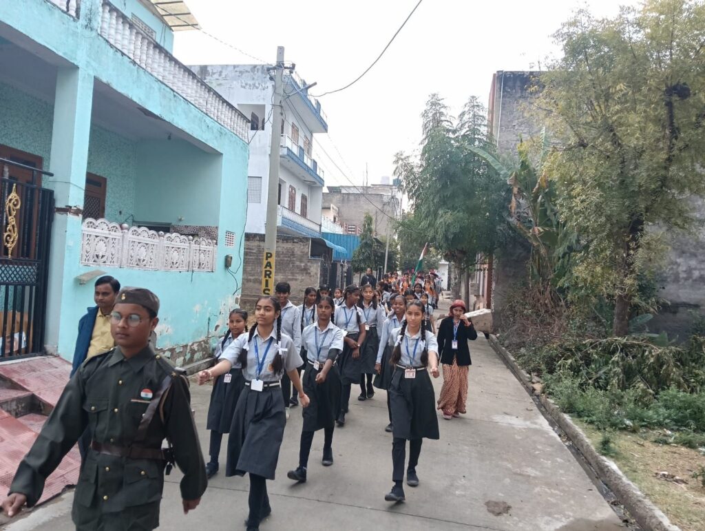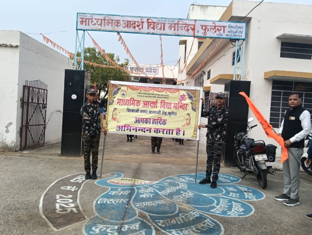 कार्यक्रम का मुख्य आकर्षण भव्य पथ संचलन रहा, जिसे मुख्य अतिथि भजनाराम चौधरी (सहा उप निरीक्षक, जीआरपी थाना फुलेरा) ने हरी झंडी दिखाकर रवाना किया। संघ की धुन पर कदमताल करते अनुशासित छात्रों का जत्था जब शिवाजी नगर, नेहरू नगर और गोरधनपूरा की गलियों से गुजरा, तो नजारा देखते ही बनता था।