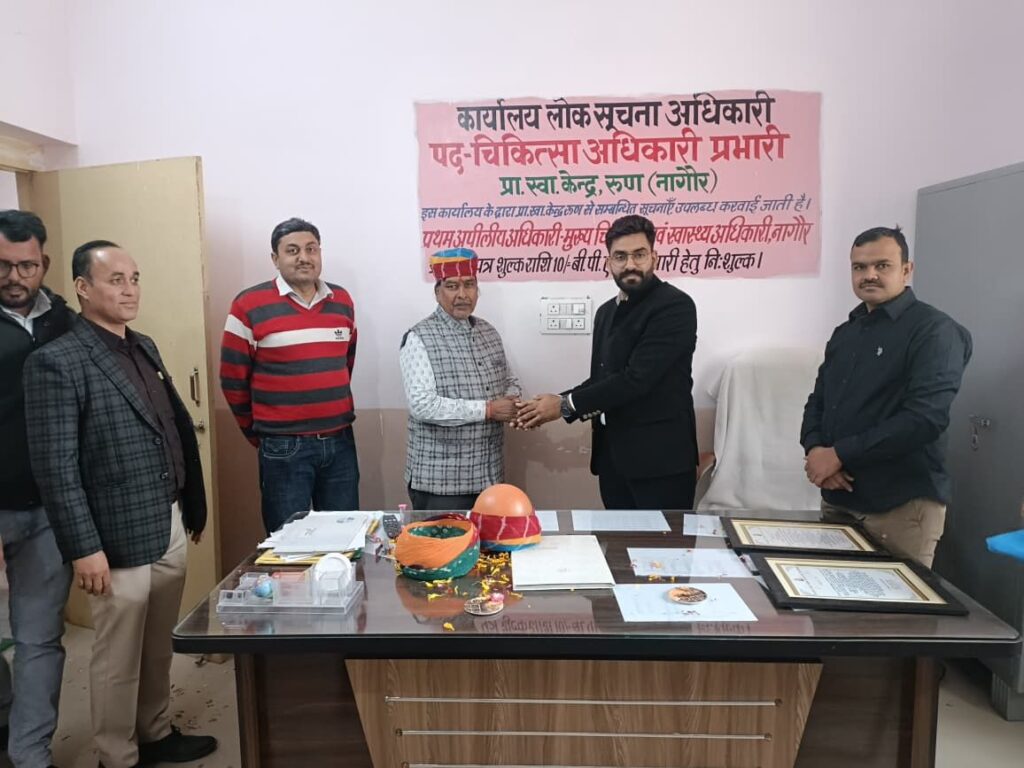 रूण – कस्बे के राजकीय प्राथमिक स्वास्थ्य केंद्र (PHC) में सोमवार को सम्मान समारोह आयोजित किया गया। समारोह में चिकित्सालय के विकास और जन सुविधाओं के विस्तार में अपना महत्वपूर्ण योगदान देने वाले भामाशाहों का साफा पहनाकर एवं प्रशस्ति पत्र प्रदान कर सम्मानित किया गया।